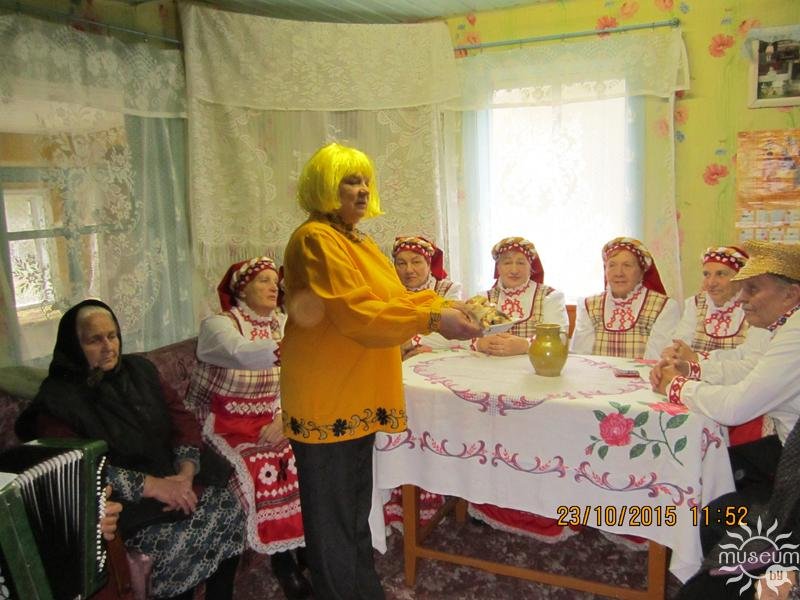 Раньше в деревнях люди собирались в одном доме,чтобы весело, с песнями и танцами проводить свободное время. Именно так и прошло это мероприятие. Звучали белорусские народные песни, присутствующие с удовольствием принимали участие в народных играх. Не обошлось и без угощений. Хозяйка дома Галина Степановна Пракапец напекла в своей печи ароматных и румяных сырников.